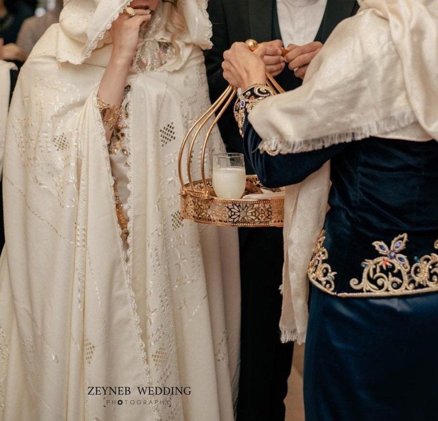 1-أدخلي برجلك اليمين يا عروس: تخرج الفتاة من البيت تحت جناح والدها لتركب السيارة المخصصة لها، لأخذها الى قاعة العرس التي تتباها بها حماتها لأنها أكبر من قاعة عرس إبن أختها، يتم استقبالها على أنغام أغنية “بالسلامة جيتي لالة لعروسة، يا عْمَارة بيتي لالّة لعروسة “